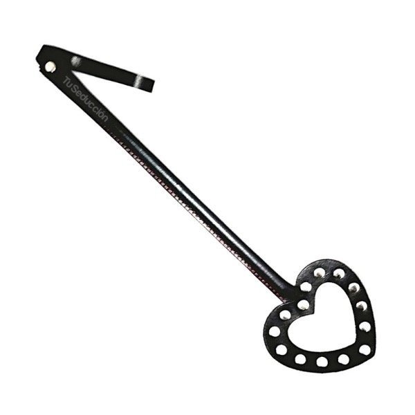 Para domar a tu fiera cuando la situación se te empiece a ir de las manos te va a hacer falta un poco de ayuda. La palmeta corazón de cuero es un complemento clásico en los juegos sexuales de sometimiento, sólo que para suavizar un poco tus intenciones está decorado con un precioso corazón 100% de cuero y rodeado por unos taches de metal que agudizarán los sentidos y aumentarán la temperatura en el cuarto.