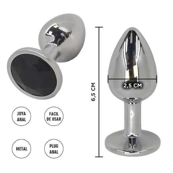 Por su tamaño es un accesorio sexual discreto, pero el punto llamativo lo aporta la base, decorada con una piedra negra.