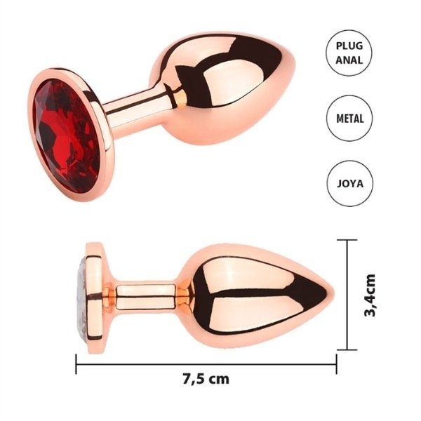 Añade un toque de lujo a tus momentos íntimos con esta joya anal Small dorada, decorada con una gema roja brillante. Su diseño ergonómico garantiza comodidad y placer, convirtiéndola en una pieza esencial para tus juegos íntimos.