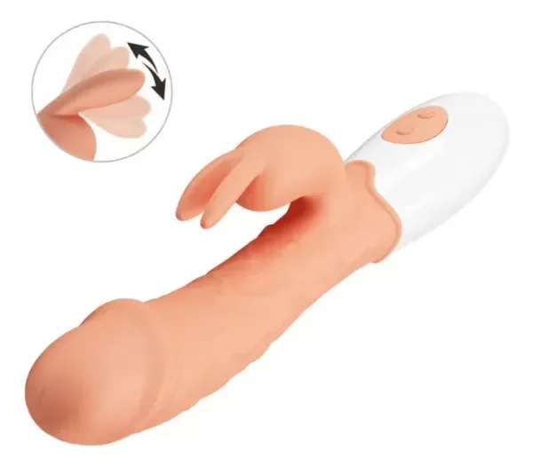 Potente vibrador diseñado para la estimulacion de clitoris y Punto G, con superficie siliconada y texturizada, cuanta con 30 funciones de vibracion potenciadas por un motor de Pilas (2AAA no incluidas), cuenta con 10 cm de superficie insertable y estimulacion clitorial.